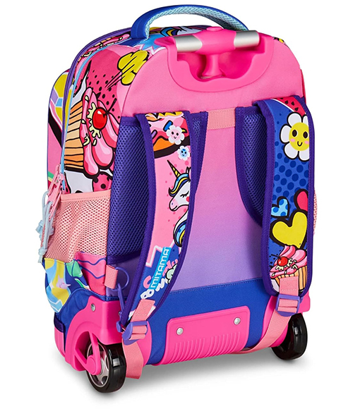 Rrotat me diametër 7 cm janë bërë prej gome të butë që mbrojnë gropat dhe gunga në çdo lloj terreni. Shndërrohet lehtësisht në një çantë shpine falë rripave të saj të tërheqshëm të shpatullave Fast’n Go. Pëlhurë: Poliester