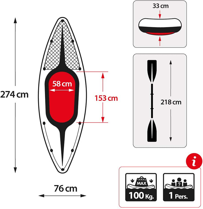 I shkëlqyer për të përjetuar liqene dhe lumenj të butë vetëm, ky kajak i Serisë Sportive është perfekt për një të rritur. I lehtë dhe kompakt, ky kajak është shumë i lehtë për t’u montuar dhe, me valvulën Boston, fryhet dhe çfryhet brenda pak minutash.