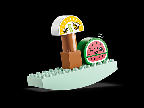 Fëmijët mund të mësojnë për ekuilibrin ndërsa grumbullojnë lodrat me rrepkë, luleshtrydhe, limon dhe shalqi. Të gjitha kompletet LEGO DUPLO janë krijuar për të zhvilluar vetë-shprehjen – në këtë, çdo pjesë e ushqimit ka një shprehje të ndryshme për të sjellë në jetë lojën krijuese!