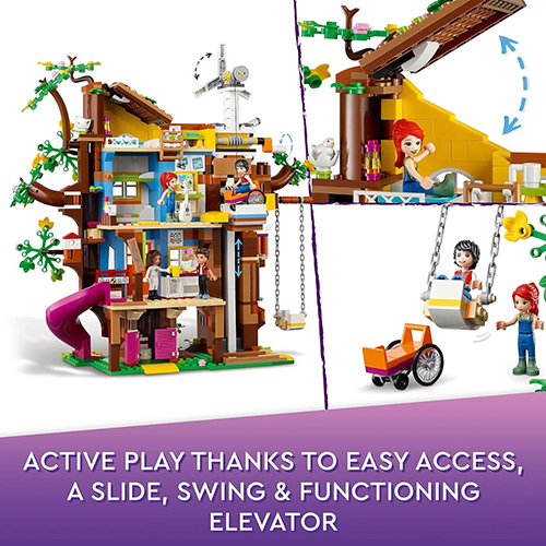 Shtëpia me pemë 4-katëshe e frymëzuar nga natyra e lodrave LEGO Friends përmban një zyrë, kuzhinë, dhomë gjumi, dhomë ndenjjeje, plus shumë zona të detajuara për lojëra.