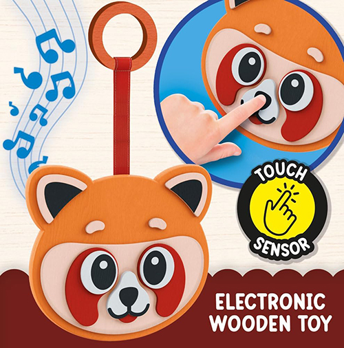 Montessori panda e kuqe e gëzuar është prej druri natyral.