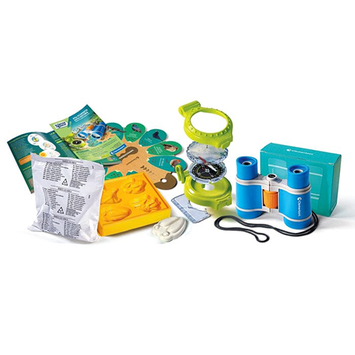 Loja përmban dylbi, busull dhe mjete të tjera eksplorimi që lejojnë fëmijën të argëtohet jashtë.