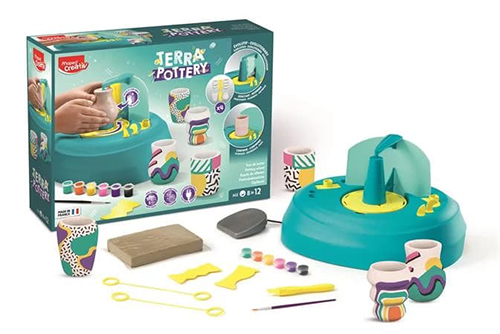 Kompleti Maped është i përshtatshëm për fëmijë nga 8 vjeç. Paketa Terra Pottery përmban vegla qeramike, një kilogram argjilë natyrale, një përshtatës elektrik dhe aksesorë për dekorimin e qeramikës.