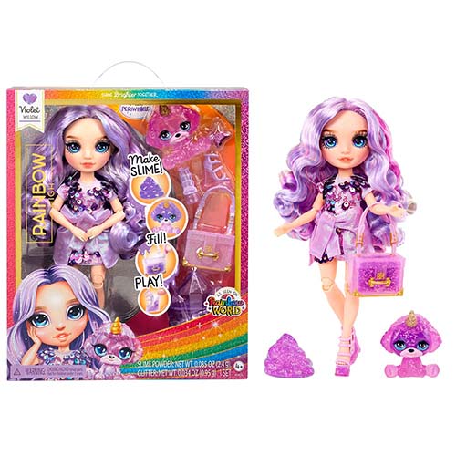 Fëmijëve do t’ ju pëlqejë të krijojnë tregimet e tyre të lojës në Rainbow World, siç shihet në serialin e animuar të suksesshëm. Violet Willow vjen me gjithçka që ju nevojitet për të bërë slime shkëlqyese DIY, duke përfshirë pluhurat e slime & xixa dhe një shaker kristali për të bërë dhe ruajtur slime.