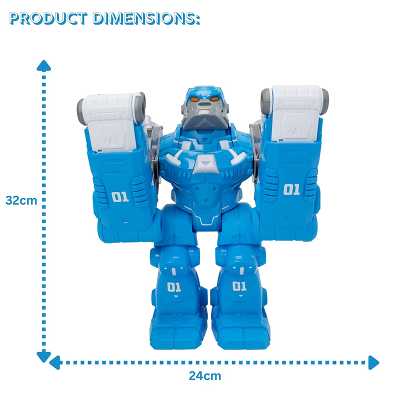 Ky robot lëshues automjetesh emocionues paraqet një dizajn të egër gorille robotik që fëmijët do ta adhurojnë. I kompletuar me drita, gërhitje gorille, tinguj motori dhe sy të shndritshëm, ai i jep jetë çdo gare duke garantuar orë të tëra argëtimi plot aksion për fëmijët e moshës 3 vjeç e lart.