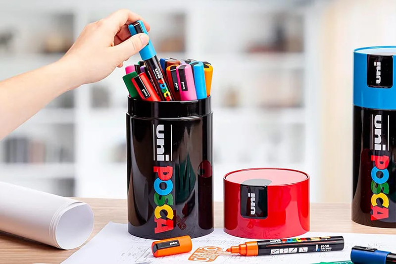 18 markera Uni POSCA me majë mesatare, vijë 2.5 mm, ngjyra të ndryshme. Karakteristikat teknike: Markera tempera Uni POSCA me bojë pigmenti me bazë uji, i lehtë dhe i papërshkueshëm nga uji.