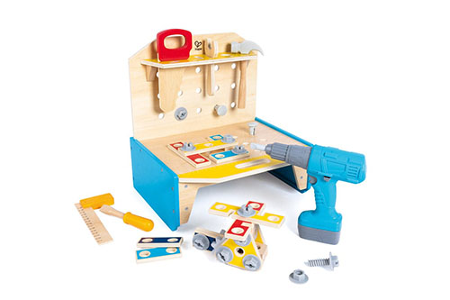 Me mjete duke përfshirë një trapan elektrik, çekiç, kaçavidë, çelës, vizore dhe një sharrë, fëmijët mund të luajnë me vegla lodër funksionale dhe të shijojnë një përvojë realiste dhe tërheqëse.