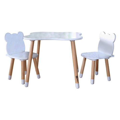 Tavolinë moderne dhe minimaliste prej druri me 2 karrige në kombinim dy ngjyrash: thupër natyrale dhe e bardha është e përshtatshme për përdorim në dhomën e fëmijëve, dhomën e ndenjes, kuzhinën apo çdo hapësirë tjetër të shtëpisë tuaj, sepse është një zgjedhje perfekte për momente krijuese, pikturë, lexuar, për të luajtur dhe madje për të ngrënë.